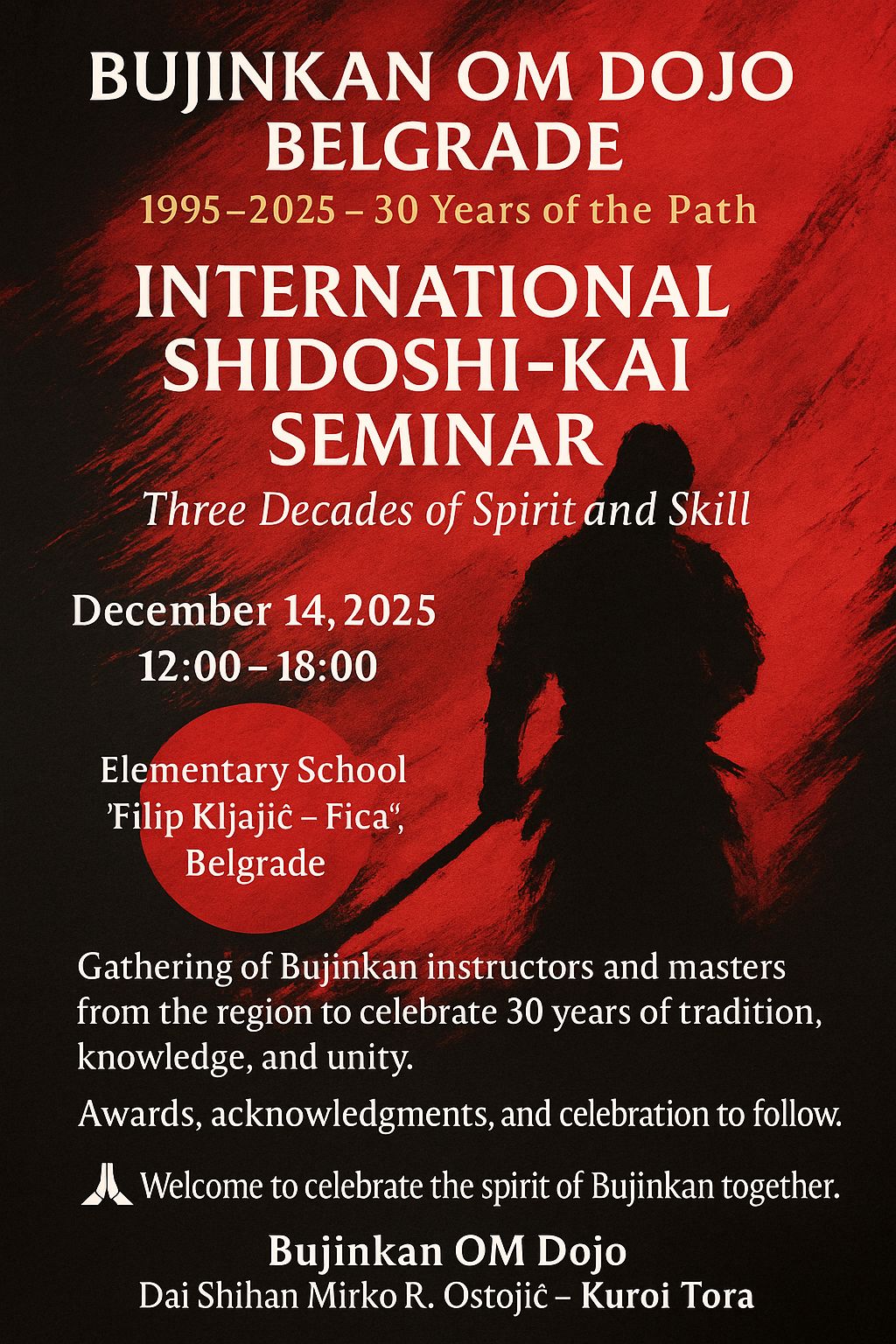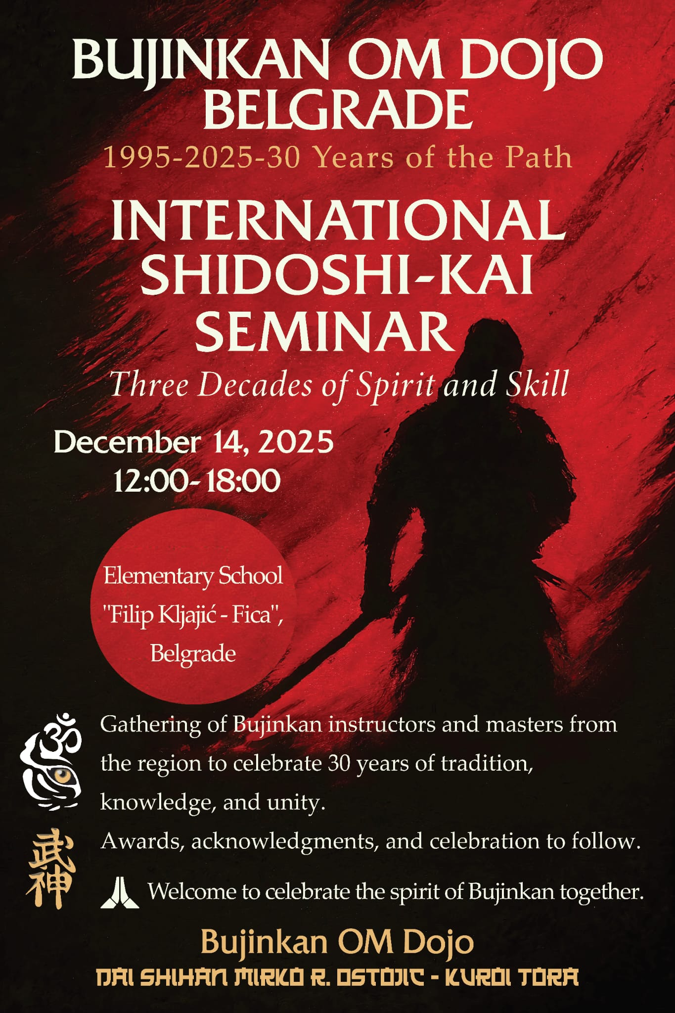 INTERNATIONAL SHIDOSHI-KAI SEMINAR 🎉 Celebrating 30 Years of Tradition, Knowledge & Unity! 📍 Elementary School “Filip Kljajić – Fića”, Belgrade📆 December 14th, 2025🕐 12:00 – 18:00 ✨ Gathering of Bujinkan instructors and masters from across the region🏆 Awards • Acknowledgments • Celebration 💫 Join us in honoring and celebrating the Spirit of Bujinkan! 🥋 Bujinkan […]